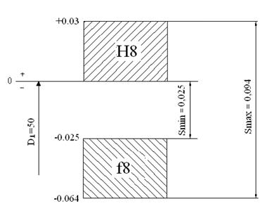 Рисунок 2.1 - Схема расположения полей допусков посадки с зазором D1=Æ50