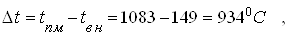 Из расчета видно,что в случае медных электродов толщина стенки может быть очень большой. На практике толщина медной стенки выбирается гораздо меньшей. Поскольку при меньших толщинах стенки опасности перегрева рабочей поверхности электрода не существует, то толщину стенки можно выбирать не из тепловых, а из иных соображений, например , прочностных, ресурсных и прочих. Поэтому толщину стенки выбираем меньше критической (0.098 м), соответственно равную 10 мм, что вполне обеспечивает и прочность стенки даже при значительном больших давлениях, и ресурс непрерывной работы. Температурный перепад на ней равен: