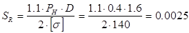 где коэффициент К1 = 0.01м; К2 = 0.008м. SR =0.0038м. расчетная толщина стенки обечайки определяется по формуле (5.1); S = 0,01м. – исполнительная толщина стенки обечайки; С = 0 – прибавка к расчетной толщине для компенсации коррозии, DR – расчетный внутренний диаметр укрепляемого элемента. Для цилиндрических обечаек расчетный диаметр укрепляемых элементов определяется по формуле: