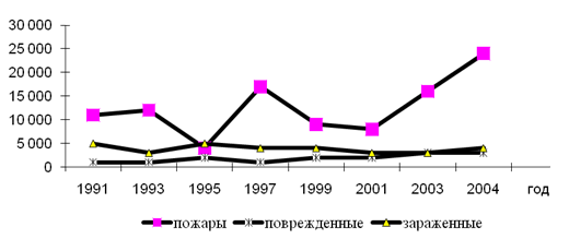Рис.1 Динамика площади поражения лесов, га Таблица 2.