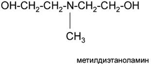где R - спиртовой радикал, например С2Н4ОН; R2, R3 - либо спиртовой, либо углеводородный радикал, либо Н+. По степени замещения атомов водорода при атоме азота алканоламины делятся первичные, вторичные и третичные. Первичные