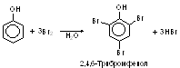 3.5 Галогенирование Высокая реакционная способность фенола приводит к тому, что даже при его обработке бромной водой происходит замещение трех атомов водорода: