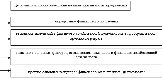 Рис. 1. Схема анализа финансово-хозяйственной деятельности предприятии Финансовый анализ на предприятии состоит из собственно анализа – логических приёмов определения понятия финансов предприятия, когда это понятие подразделяют по признакам на составные части, чтобы таким образом сделать познание его ясным в полном объёме; синтеза – соединения ранее разложенных элементов изучения объекта в единое целое и выработки мер по улучшению финансового состояния предприятия. Финансовое состояние зависит от всех сторон деятельности предприятий: от выполнения производственных планов, снижения себестоимости продукции и увеличения прибыли, роста эффективности производства, а также от факторов, действующих в сфере обращения и связанных с организацией оборота товарных и денежных фондов – улучшения взаимосвязей с поставщиками сырья и материалов, покупателями продукции, совершенствования процессов реализации и расчетов. При анализе необходимо выявить причины неустойчивого состояния предприятия и наметить пути его улучшения (устранения). Задачами диагностики финансово - хозяйственной деятельности предприятия являются: - идентификация реального состояния анализируемого объекта; - исследования состава и свойств объекта, его сравнение с известными аналогами или базовыми характеристиками, нормативными величинами; - выявление изменений в состоянии объекта в пространственно - временном разрезе; - установление основных факторов, вызвавших изменения в состоянии объекта, и учёт их влияния; - прогноз основных тенденций. Правильный выбор цели и постановка задач диагностики финансово — хозяйственной деятельности предприятия имеют большое значение. На основе поставленных целей и с учётом имеющихся возможностей определяется истинное состояние предприятия, вырабатываются способы достижения оптимальных решений, подбираются методы управления, производятся различные изменения в организационной, технологической, коммерческой и других видах деятельности предприятия. Анализ финансово-хозяйственной деятельности предприятия преследует несколько целей и представлен на рис. 2. В традиционном понимании анализ финансово-хозяйственной деятельности представляет собой метод оценки и прогнозирования финансового состояния предприятия на основе его бухгалтерской отчетности. Принято выделять два вида финансового анализа - внутренний и внешний. Внутренний анализ проводится работниками предприятия (финансовыми менеджерами). Внешний анализ проводится аналитиками, являющимися посторонними лицами для предприятия (например, аудиторами).
