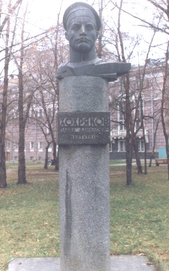 Исторические сведения Накануне празднования годовщины Октября, около Пермского театра был поставлен памятник на братской могиле погибших в боях Гражданской войны большевиков П.Д. Хохрякова, С.С. Большакова и П.М. Светлакова (автор Н.М. Гущин). Памятник состоял из двух частей - арки и горельефа: группа красноармейцев на фоне знамени несёт раненого или убитого товарища. Одна из фигур как бы выламывалась из всей композиции, образ идущего впереди красноармейца с винтовкой в руке придавал памятнику динамичность. Романтический пафос реквиема виделся в этом порыве, устремлённость единомышленников, сплочённых идеей и чувством, готовность к отражению грозного врага. Памятник содержал изображения серпа, молота, колосьев и на задней стороне монумента - небольшой портрет автора. На памятник в честь погибших героев гражданской войны Хохрякова, Большакова, Светлакова был объявлен конкурс, но провести его не удалось: колчаковцы наступали. Памятник создавался очень быстро: в октябре был утверждён проект художника Гущина. Эскиз из глины он лепил вместе с молодым скульптором Кузнецовым, только что окончившим скульптурное отделение Екатеринбургского художественного училища. 7 ноября 1918 года на площади состоялся военный парад, сразу после него части уезжали на Восточный фронт. Первый советский памятник в Перми простоял всего два месяца. Ворвавшиеся в Пермь колчаковцы в декабре 1918 года взорвали памятник и уничтожили братскую могилу. Автор памятника Николай Гущин был занесён в чёрные списки... К 50-летию освобождения Прикамья от белогвардейцев и иностранных интервентов, 2 июля 1969 года на этом месте установлен бюст П.Д. Хохрякова. Авторы памятника архитектор М.И. Футлик и скульптор А.А. Уральский. Павел Данилович Хохряков (1893-1918) -матрос-большевик, участник борьбы за установление советской власти на Урале. Родился 16 (28) июня 1893 года в деревне Хохряки Вожгальской волости Вятской губернии в семье батрака. С 1914 года матрос Балтийского флота на крейсере "Император Александр II". В 1917 году агитатор на фронте в Мурманске. Осенью 1917 года с мандатом за подписью Я.М. Свердлова прибыл в Екатеринбург для оказания помощи местным партийным организациям в создании вооружённых формирований и закрепления власти Советов, возглавлял Центральный штаб Красной гвардии в Екатеринбурге, член исполкома Екатеринбургского Екатеринбургского совета рабочих и солдатских депутатов, начальник Центрального штаба резерва РККА на Урале, член Уральского областного Совета. В марте 1918 года руководил доставкой из Тобольска в Екатеринбург, председатель Тобольского Совета рабочих депутатов. В июне 1918 года сформировал Особый экспедиционный отряд, создал речную флотилию, возглавил её, руководил боевыми операциями на реках Иртыш - Тура и выиграл бой с белой флотилией под с. Покровским. Бывая в Перми, Хохряков помогал местным большевикам в укреплении военных сил революции. Под натиском белых отошёл с небольшим отрядом к Режевскому заводу. Погиб 17 августа 1918 года в бою у железнодорожной станции Крутиха под Екатеринбургом, попав в окружение. Отряд сумел пробиться в Пермь и спустя пять дней он был с почестями похоронен около Пермского театра оперы и балета в братской могиле. Одна из улиц Перми носит имя Хохрякова. Описание памятника Бюст П.Д. Хохрякова на круглом постаменте. Чуть вздё
