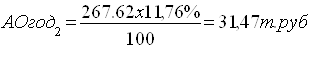 Остаточная стоимость после 2 года эксплуатации 267,62-31,47=236,15т.руб.