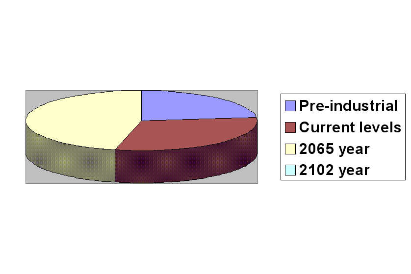 Are greenhouse gases increasing? Human activity has been increasing the concentration of greenhouse gases in the atmosphere (mostly carbon dioxide from combustion of coal, oil, and gas; plus a few other trace gases). There is no scientific debate on this point. Pre-industrial levels of carbon dioxide (prior to the start of the Industrial Revolution) were about 280 parts per million by volume (ppmv), and current levels are about 370 ppmv. According to the IPCC "business as usual" scenario of carbon dioxide increase (IS92a) in the 21st century, we would expect to see a doubling of carbon dioxide over pre-industrial levels around the year 2065.