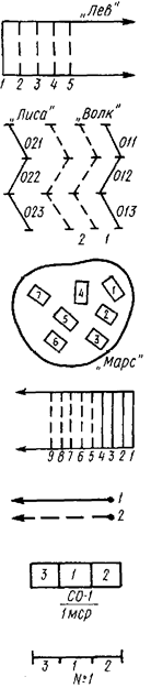 масштабе карты): 1 - противотанковые; 2 - противопехотные; 3 - управляемые